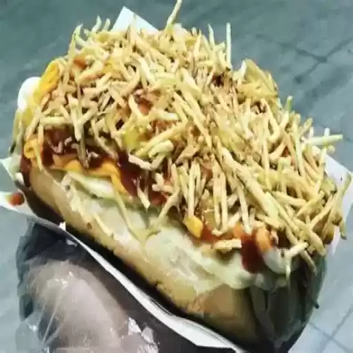 salsicha, banana, queijo, presunto, alface e batata palha.